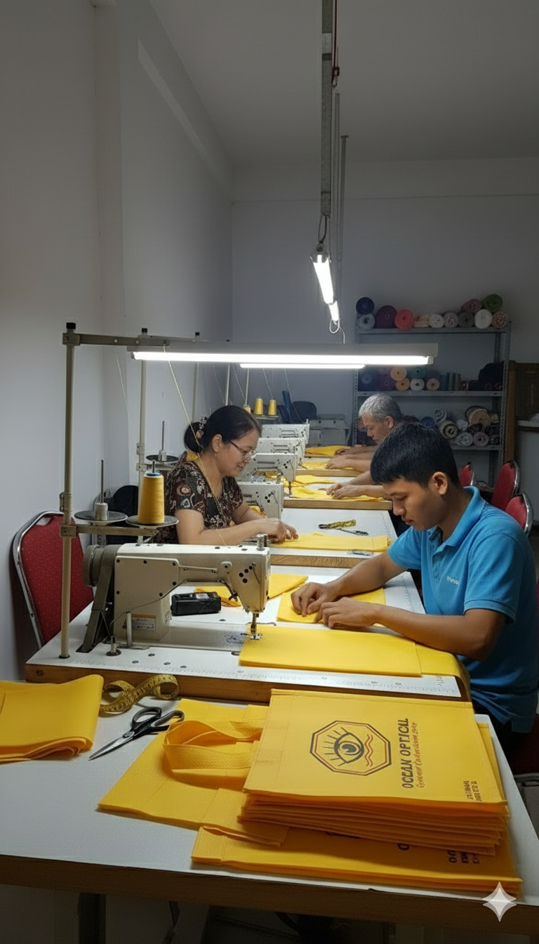 Tại Xưởng May Túi Vải ZOZO, chúng tôi áp dụng quy trình sản xuất chuyên nghiệp – khép kín – kiểm soát chất lượng nghiêm ngặt để mang đến cho khách hàng những sản phẩm túi vải đẹp, bền và đúng yêu cầu.